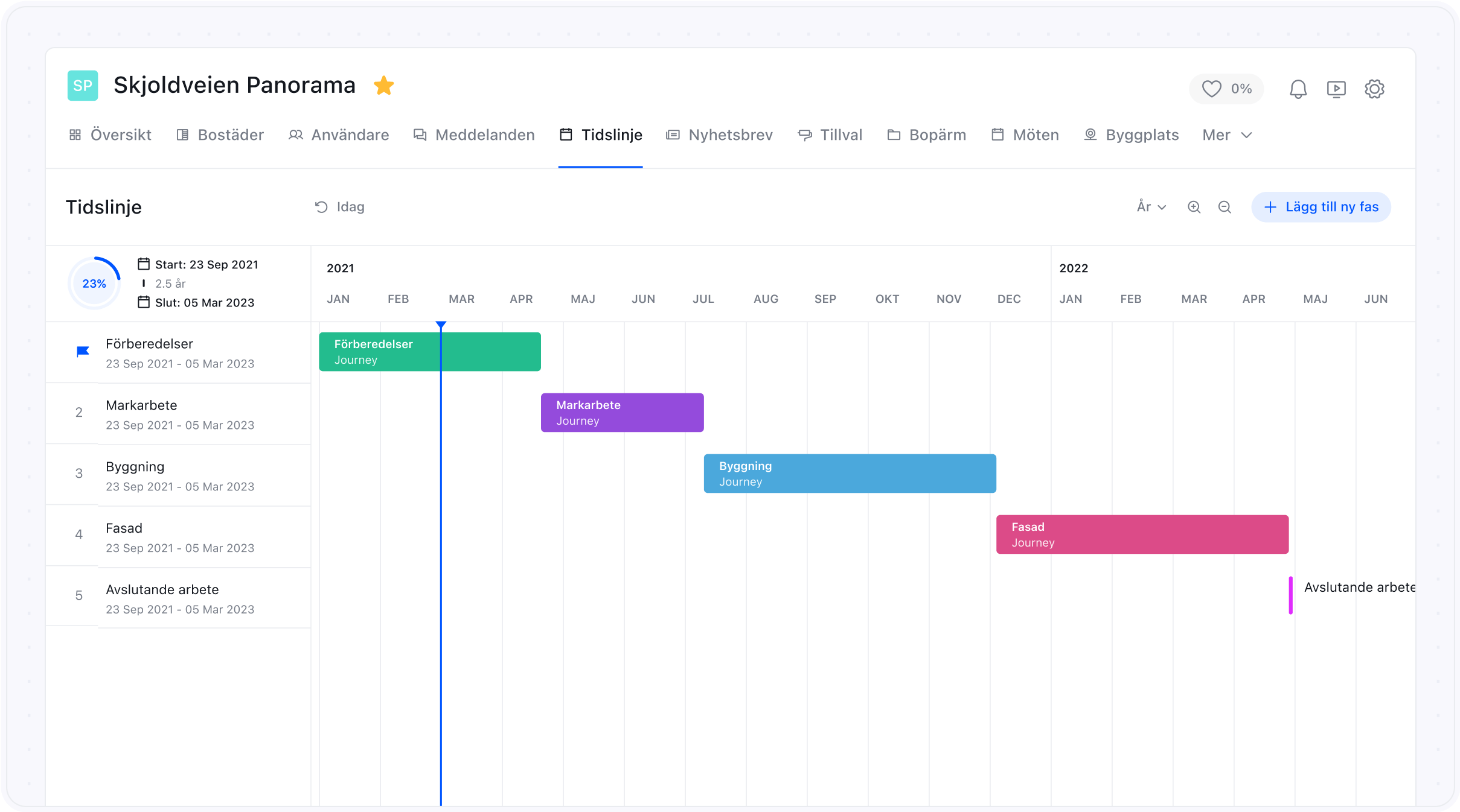 Med tidslinjen har köparen full översikt över projektets framsteg