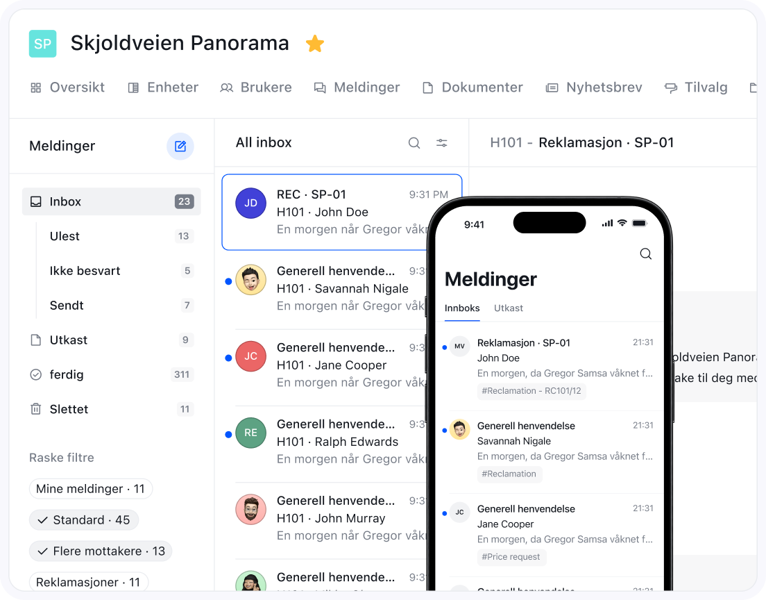 Vår ambition har alltid varit att det ska vara så översiktligt och användarvänligt som möjligt att kommunicera med olika parter samt se tillbaka på tidigare kommunikation. Man skapar enkelt nya trådar för olika typer av ärenden och förfrågningar, bifogar dokument, @namn för att inkludera ytterligare en part i tråden.