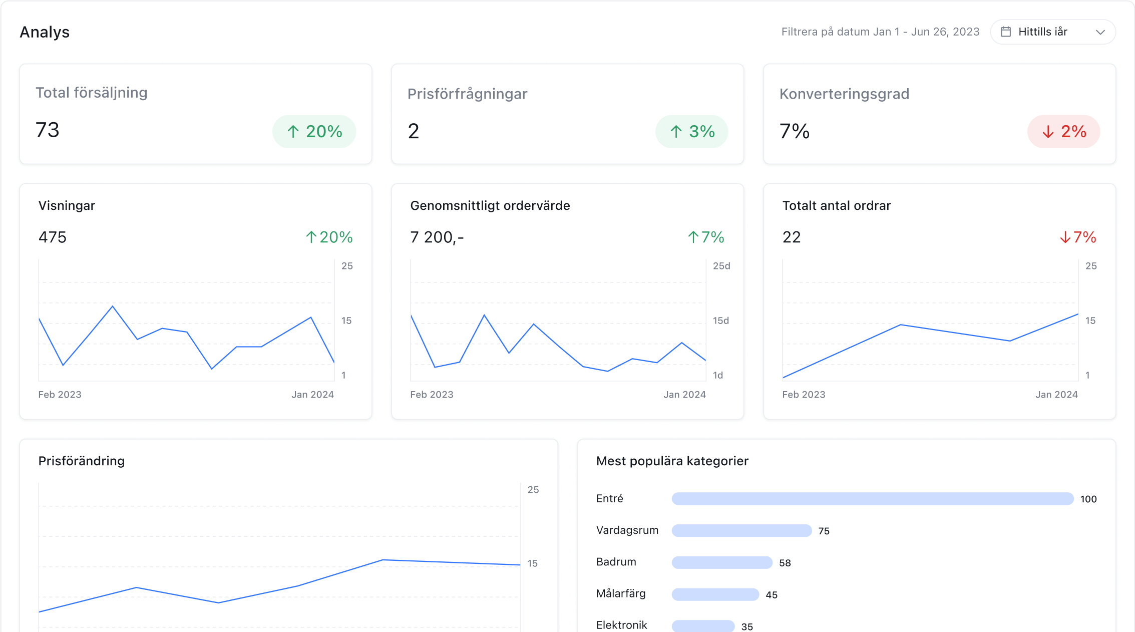 Med vårat analysverktyg får du en unik insikt i vad som ger bäst resultat. Analysera försäljningsdata, effekt av kampanjer, paket och få värdefull information för framtida tillvals/försäljningskampanjer.